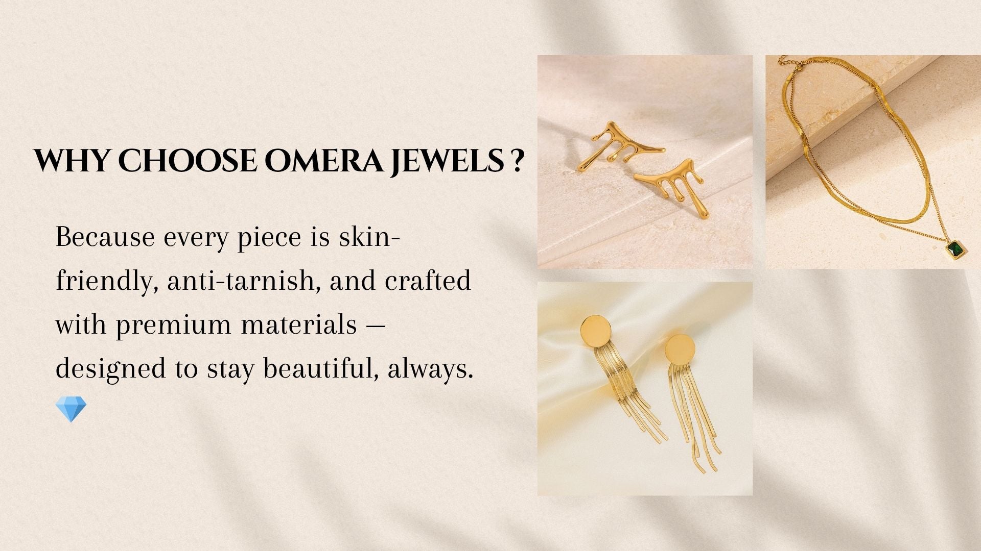 At Omera Jewels, we believe your jewelry should sparkle as long as you do. Thatβs why our anti-tarnish collection is designed for modern women who love style without the stress. Beautiful, durable, and effortlessly chic β Omera makes it easy to look and feel your best, every single day.