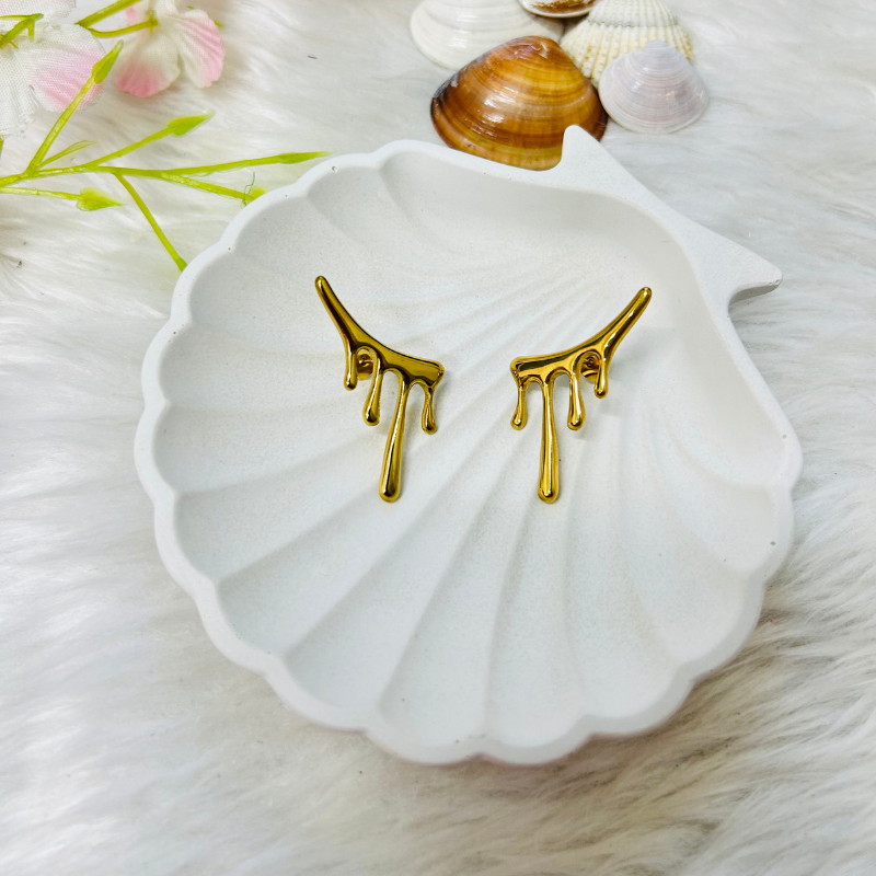 Gold Plated Abstract Drip Design Stud Earrings for Women